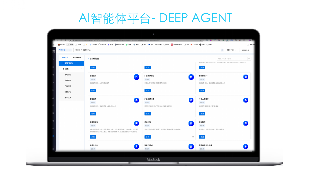 在 Deepseek 大模型掀起的新一轮 AI 技术热潮中,行业对 AI 应用的关注被推向新高度。当行业目光聚焦于 AI 技术如何赋能企业的场景时,z6人生就是博智能已凭借深厚的技术积累与对市场的敏锐洞察,提早布局了 AI 企业级应用的核心赛道—— AI 智能体。2 月 27 日,z6人生就是博智能于上海举办了「营销智能体高峰闭门研讨会」,并在会上首次发布了旗下重磅产品 —— AI 智能体平台 Deep Agent。